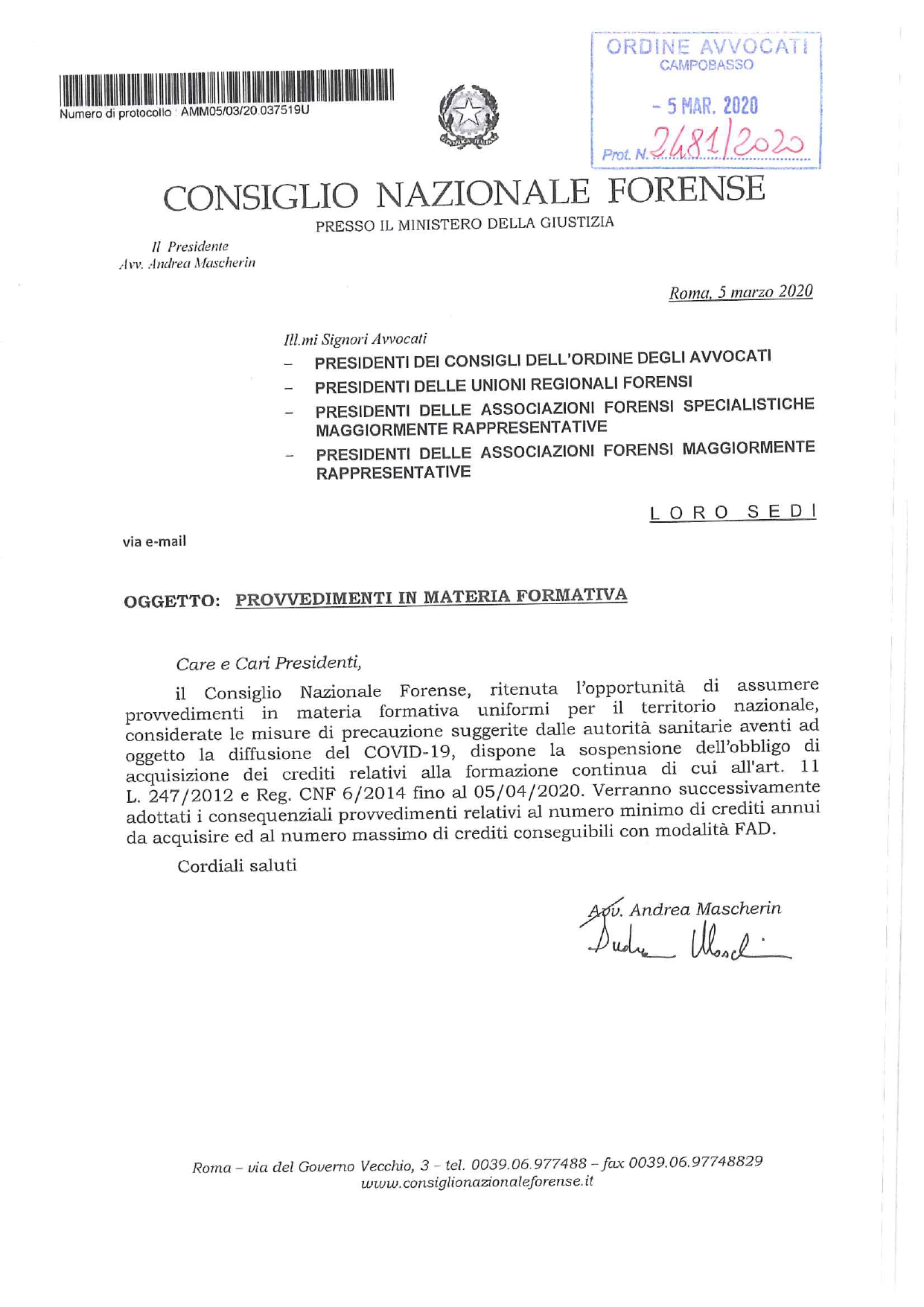 C.N.F. – PROVVEDIMENTI IN MATERIA FORMATIVA