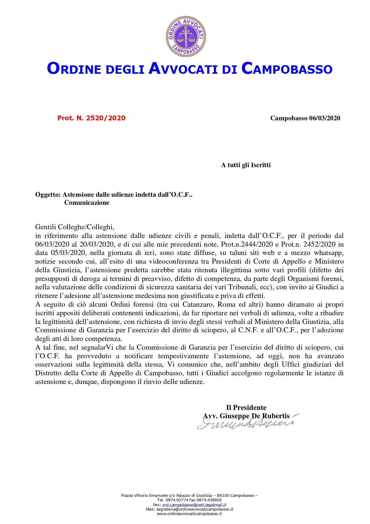 ASTENSIONE DALLE UDIENZE INDETTA DALL’O.C.F. – COMUNICAZIONE