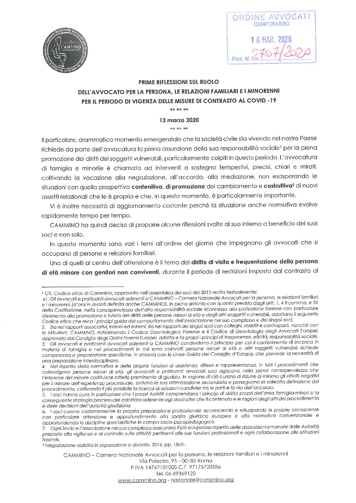 CAMMINO – RIFLESSIONI SUL RUOLO DELL’AVVOCATO, RELAZIONI FAMILIARI – COVID-19