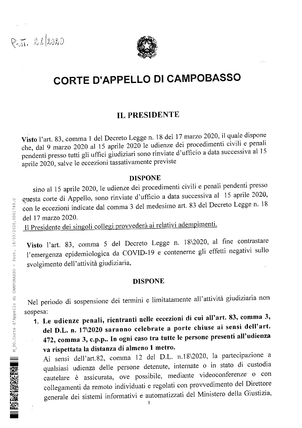 CORTE DI APPELLO E UNEP – LIMITAZIONE ATTIVITA’ GIUDIZIARIA