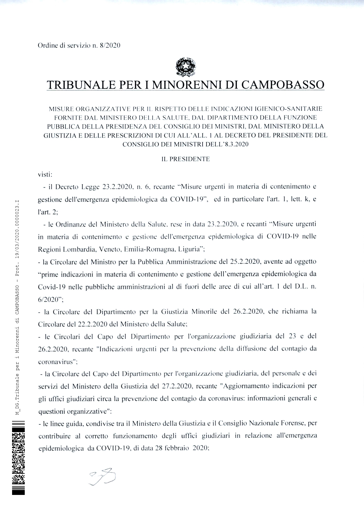 TRIBUNALE MINORI – LIMITAZIONE ATTIVITA’ GIUDIZIARIA