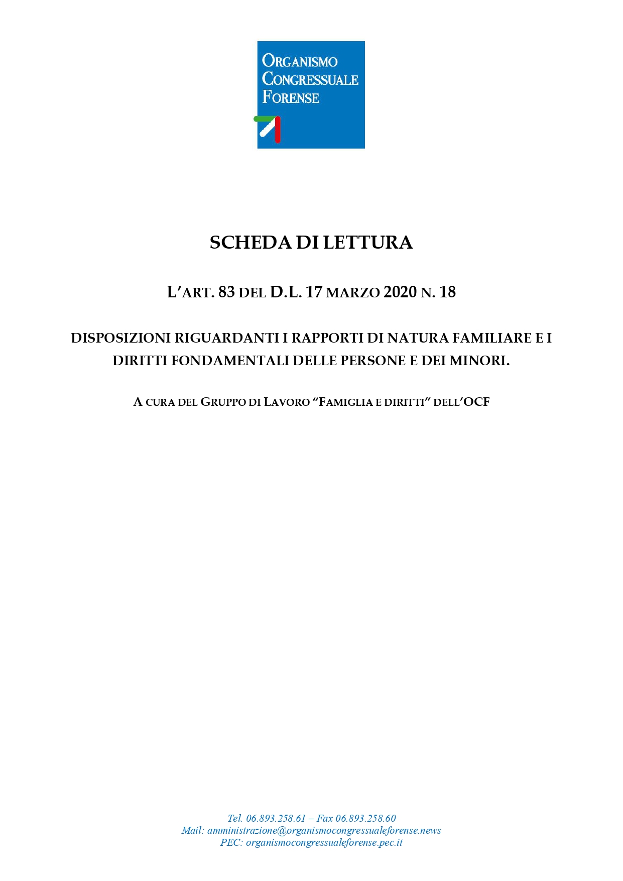 O.C.F. – SCHEDE DI LETTURA D.L. n. 18-2020 – FAMIGLIA E DIRITTI