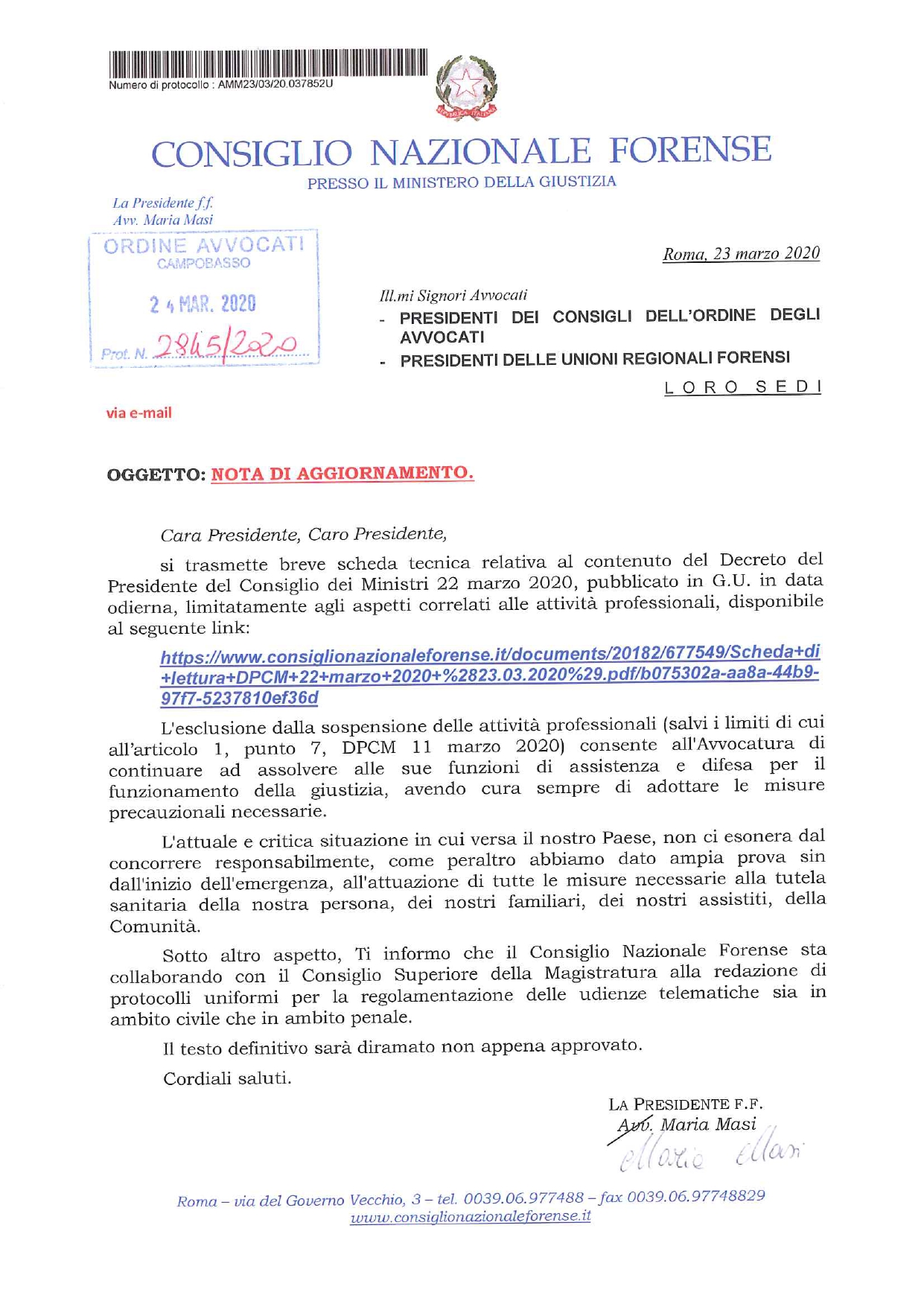 CNF – SCHEDA TECNICA DPCM 22 MARZO 2020
