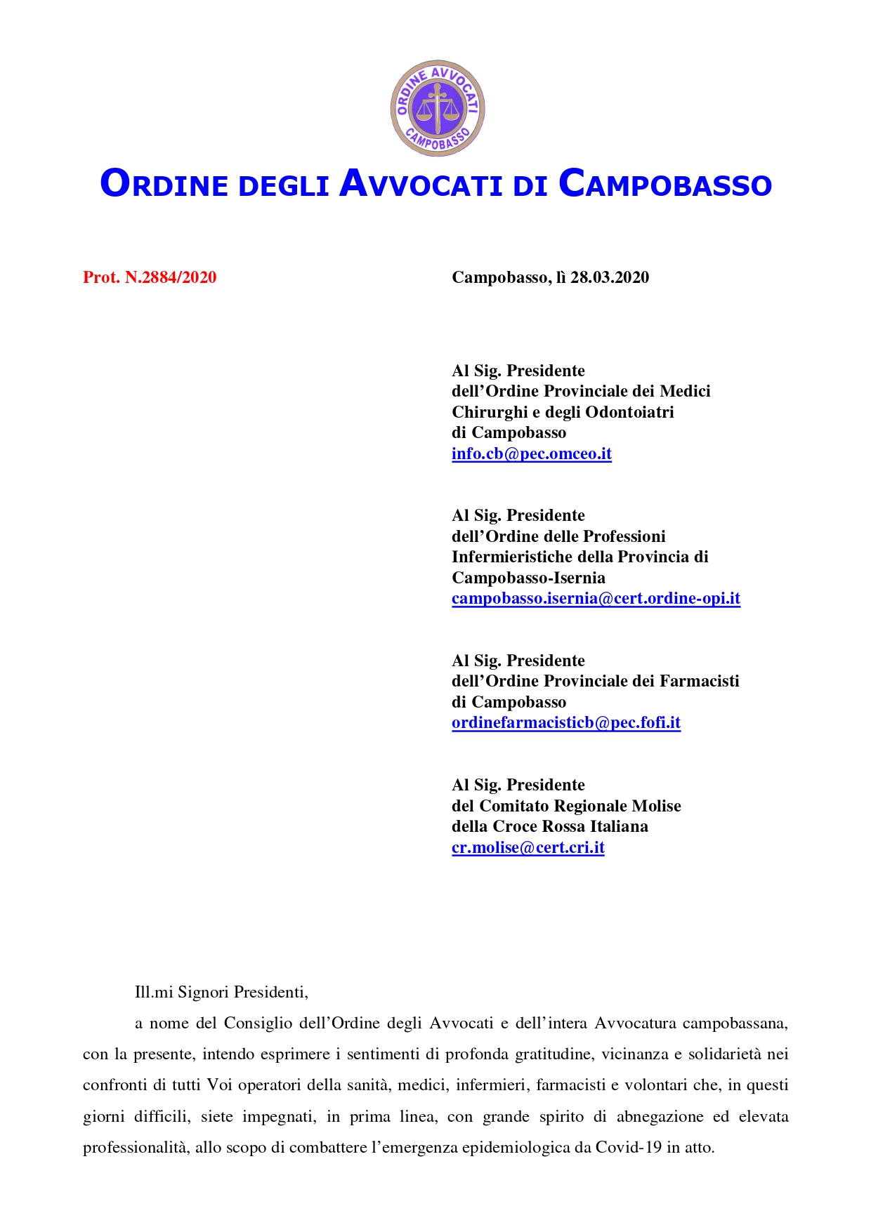 COA CB – Nota del 28.03.20 di ringraziamento agli operatori sanitari