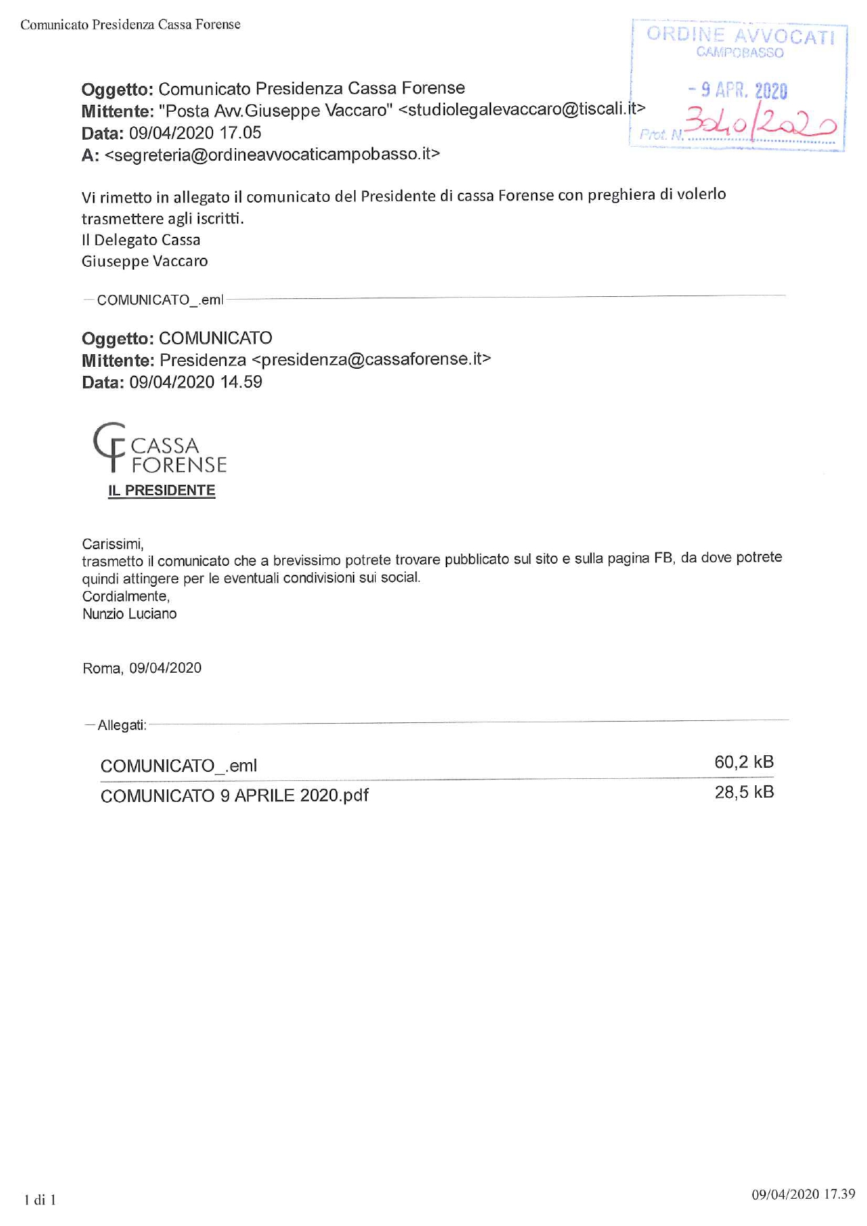 CASSA FORENSE – COMUNICATO DELLA PRESIDENZA