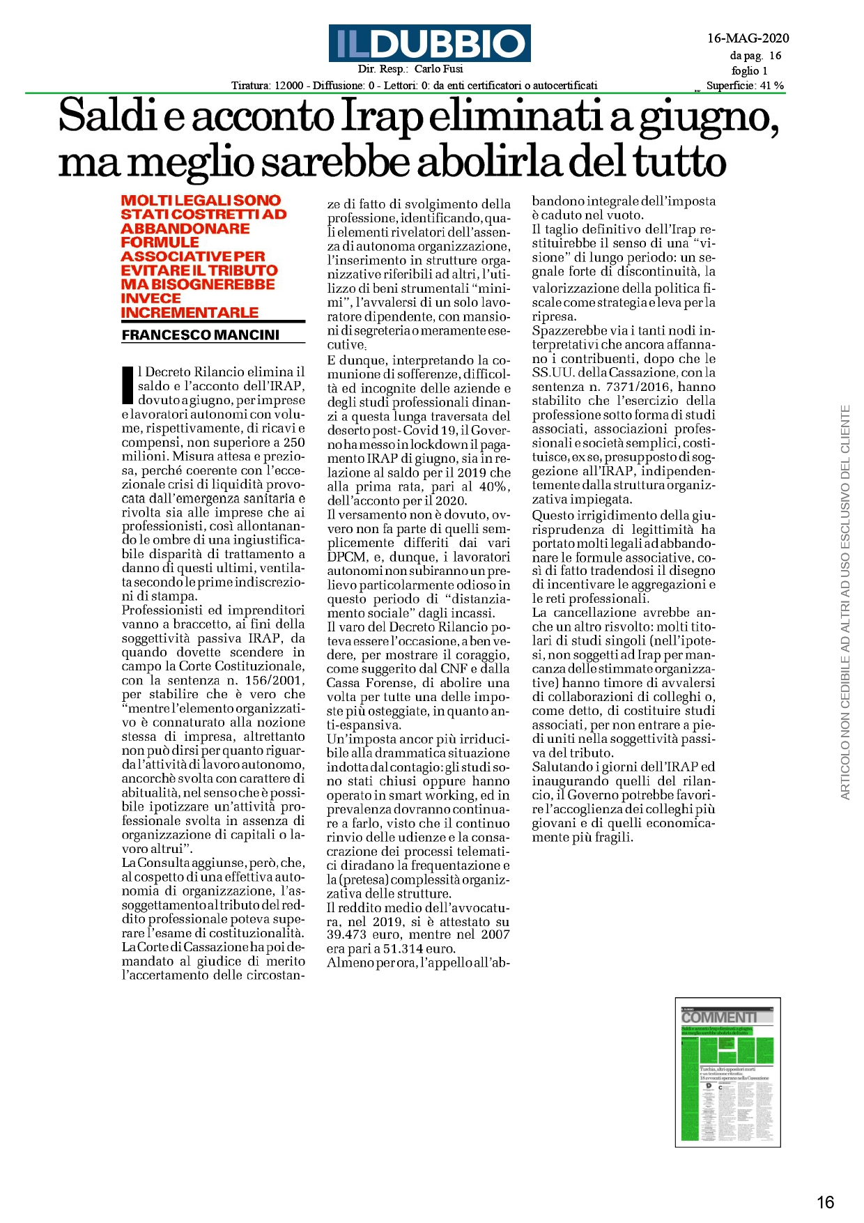 Avv. Franco Mancini – IRAP