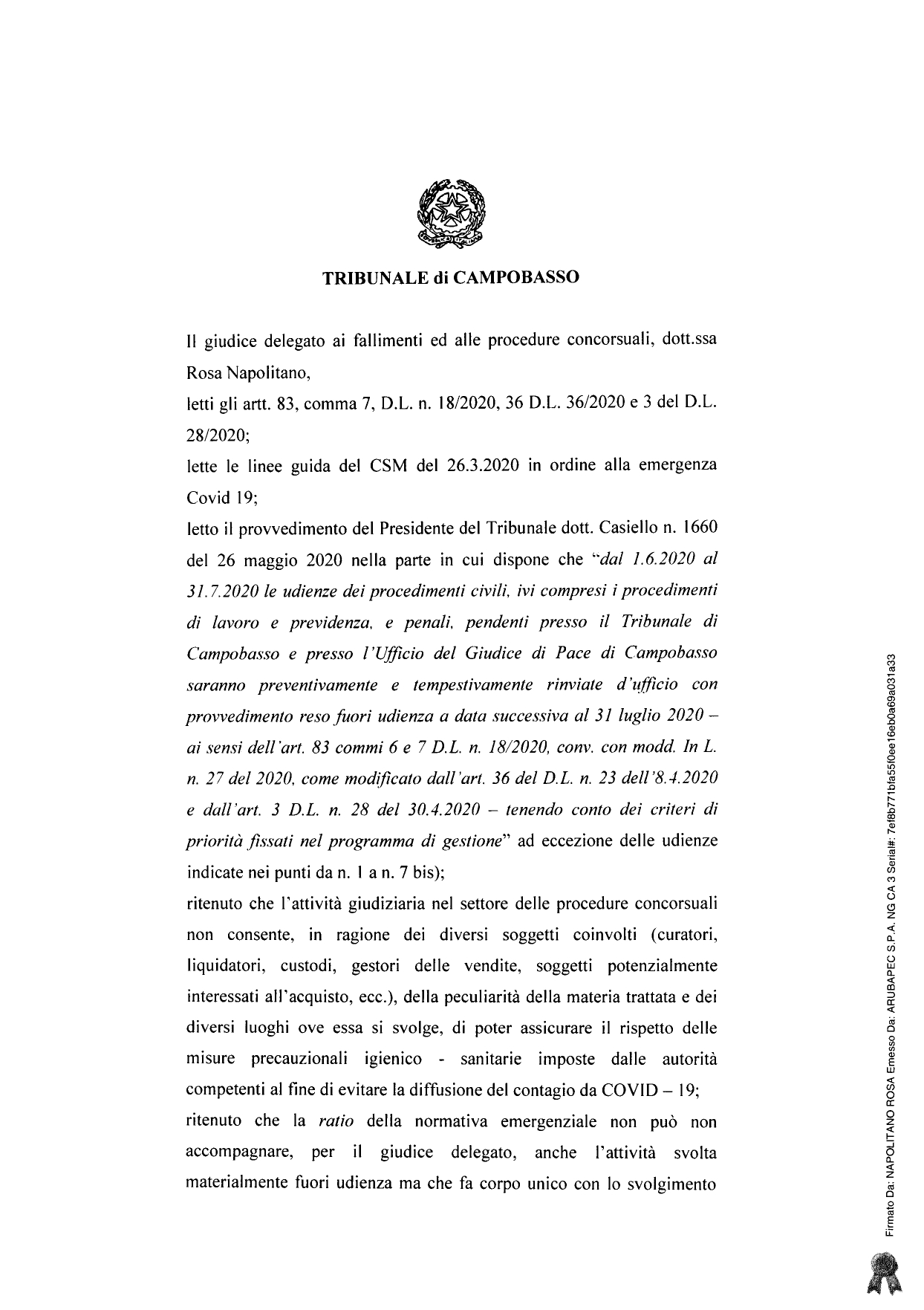 TRIBUNALE DI CAMPOBASSO – PROVVEDIMENTO DR.SSA NAPOLITANO