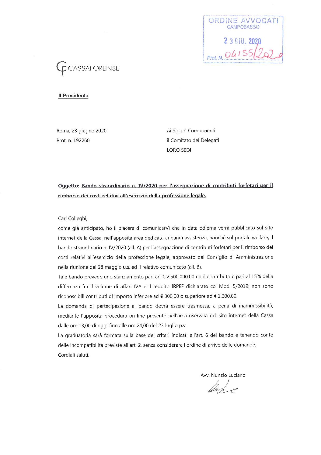 CASSA FORENSE – BANDO STRAORDINARIO N.IV/2020 – ASSEGNAZIONE CONTRIBUTI FORFETARI PER IL RIMBORSO DEI COSTI RELATIVI ALL’ESERCIZIO DELLA PROFESSIONE LEGALE
