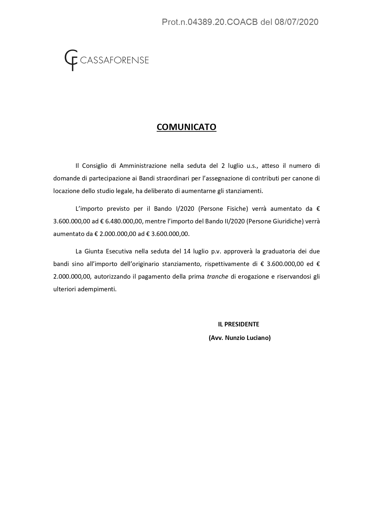 CASSA FORENSE – RIFINANZIAMENTO BANDI PERSONE FISICHE E PERSONE GIUEIDICHE