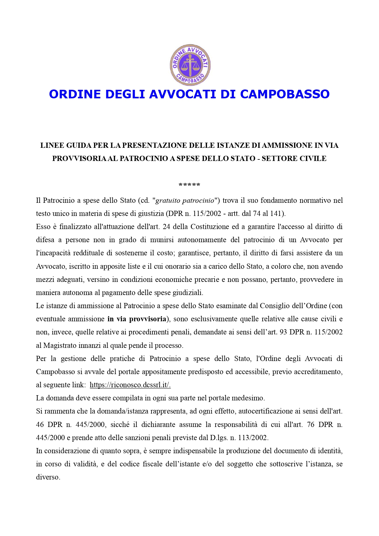 VADEMECUM SUL PATROCINIO A SPESE DELLO STATO