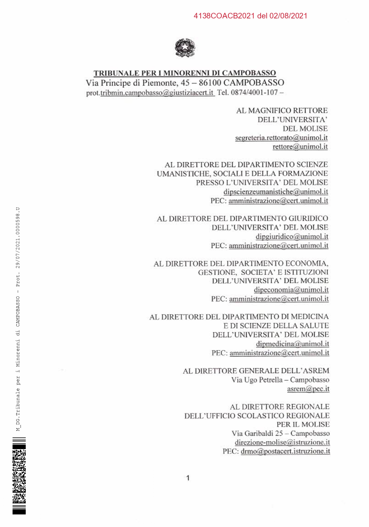 TRIBUNALE MINORENNI CB – BANDO PER LA NOMINA E CONFERMA DEI GIUDICI ONORARI MINORILI PER IL TRIENNIO 2023/2025