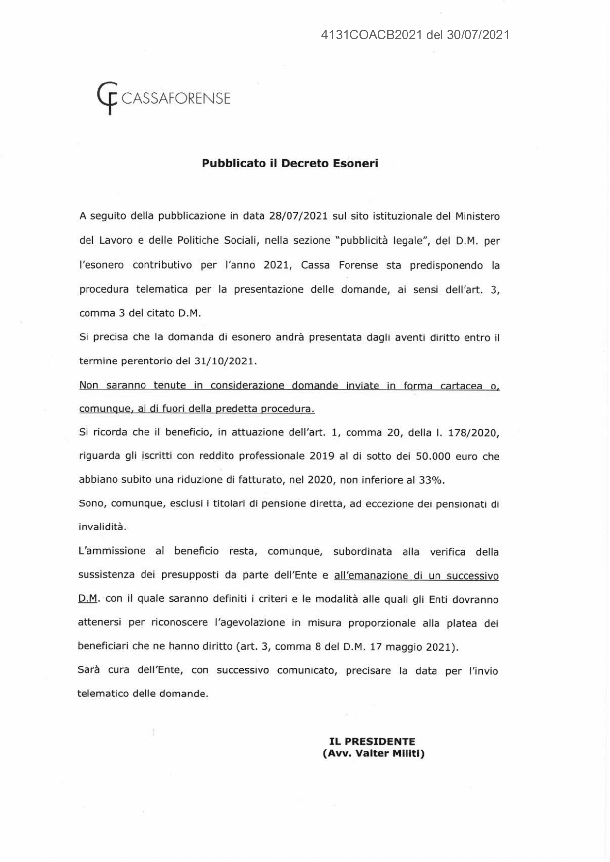4131COACB2021-Decreto esoneri - Pubblicazione_CASSA Forense_page-0001