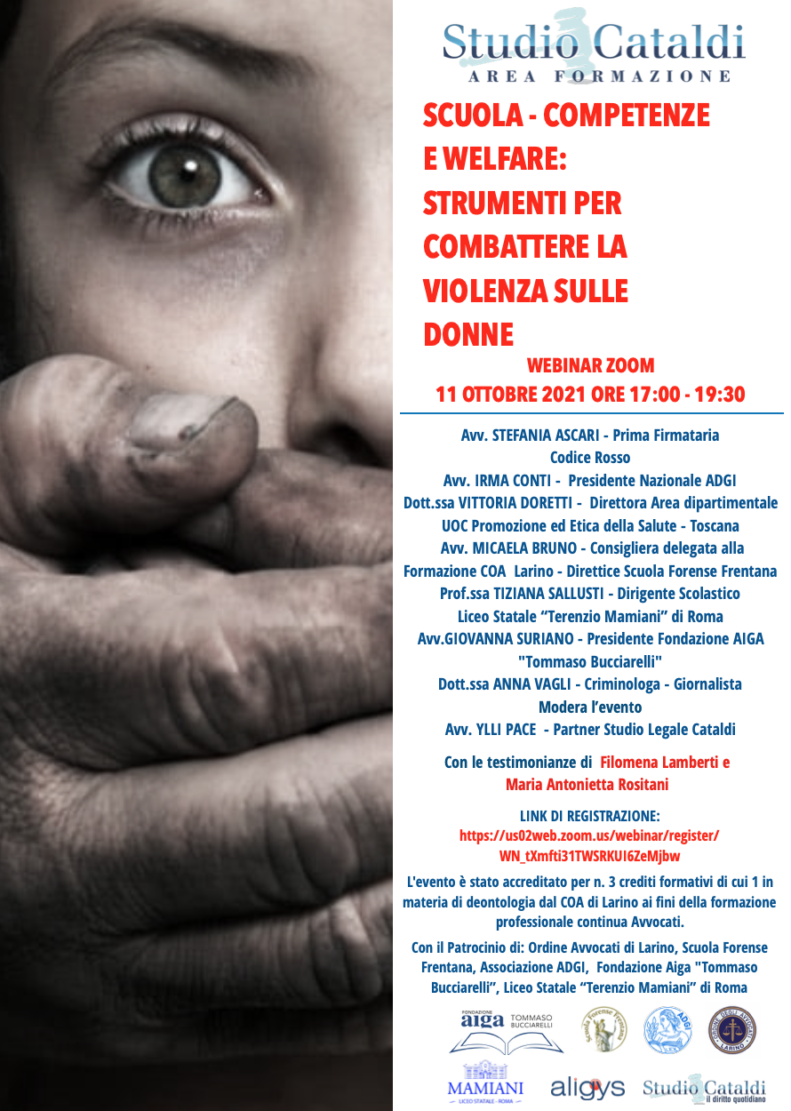 EVENTO COA LARINO: SCUOLA – COMPETENZE E WELFARE: STRUMENTI PER COMBATTERE LA VIOLENZA SULLE DONNE – 11 OTTOBRE 2021