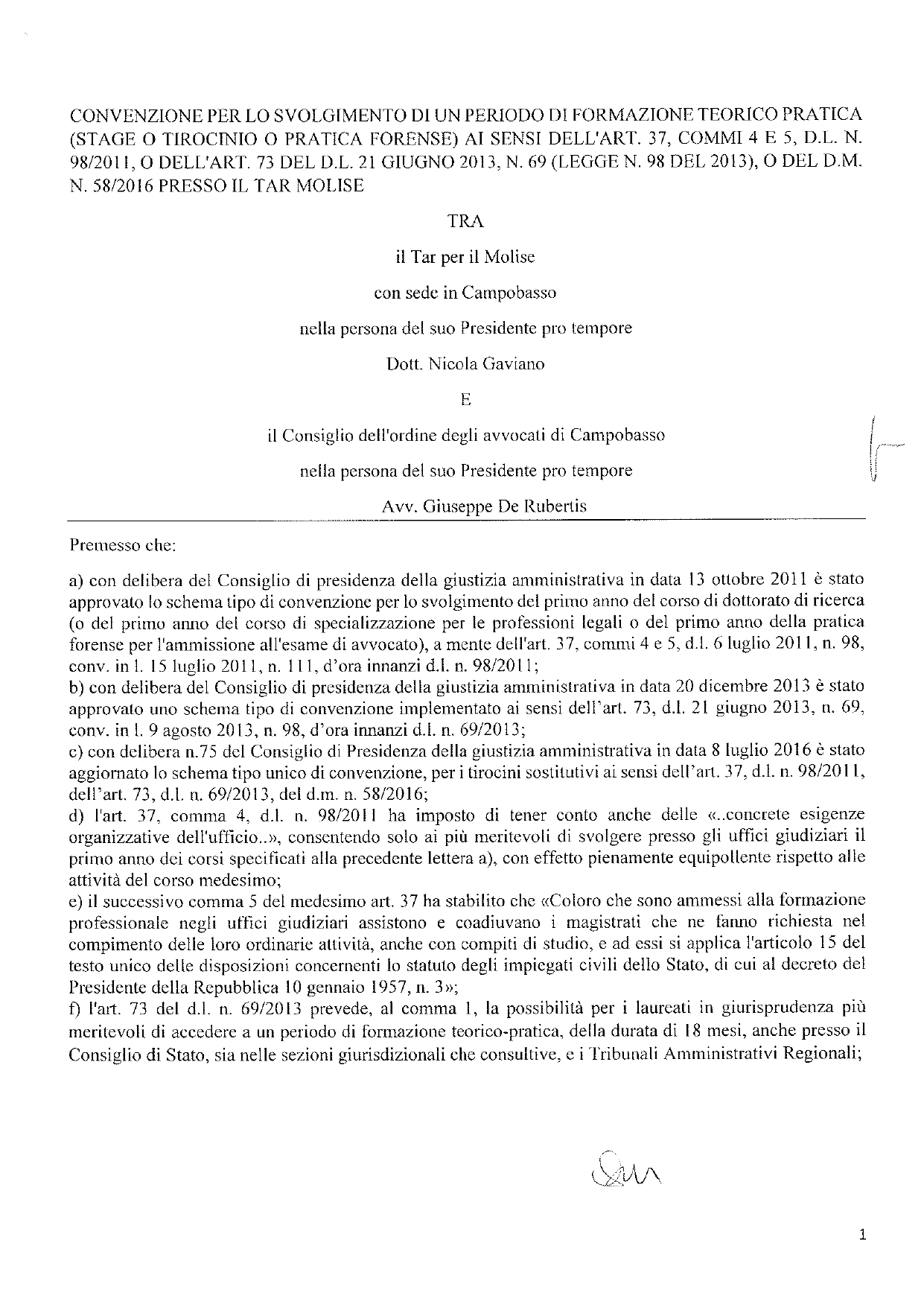 T.A.R. MOLISE – BANDO PER TIROCINI DI FORMAZIONE TEORICO-PRATICA AI SENSI DELL’ART. 73, D.L. N. 69/2013 E RELATIVA CONVENZIONE COA CAMPOBASSO