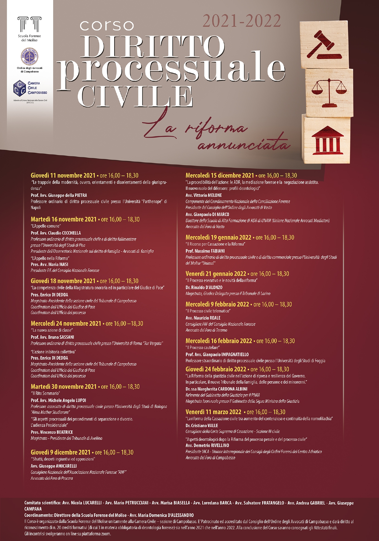 CORSO DIRITTO PROCESSUALE CIVILE 2021-2022 – LA RIFORMA ANNUNCIATA – 20 C.F.