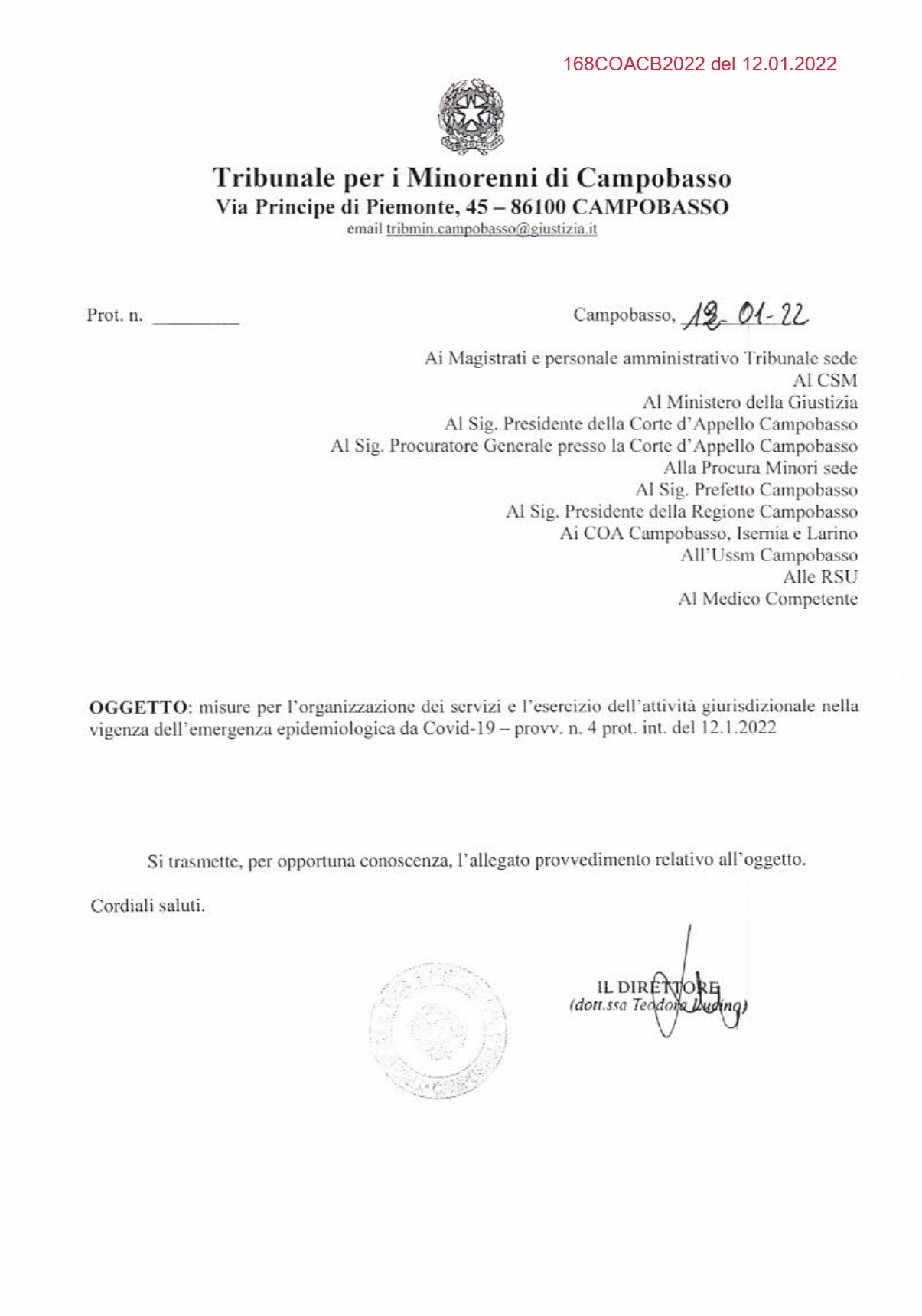 TRIBUNALE MINORENNI – MISURE OGANIZZATIVE EMERGENZA COVID-19