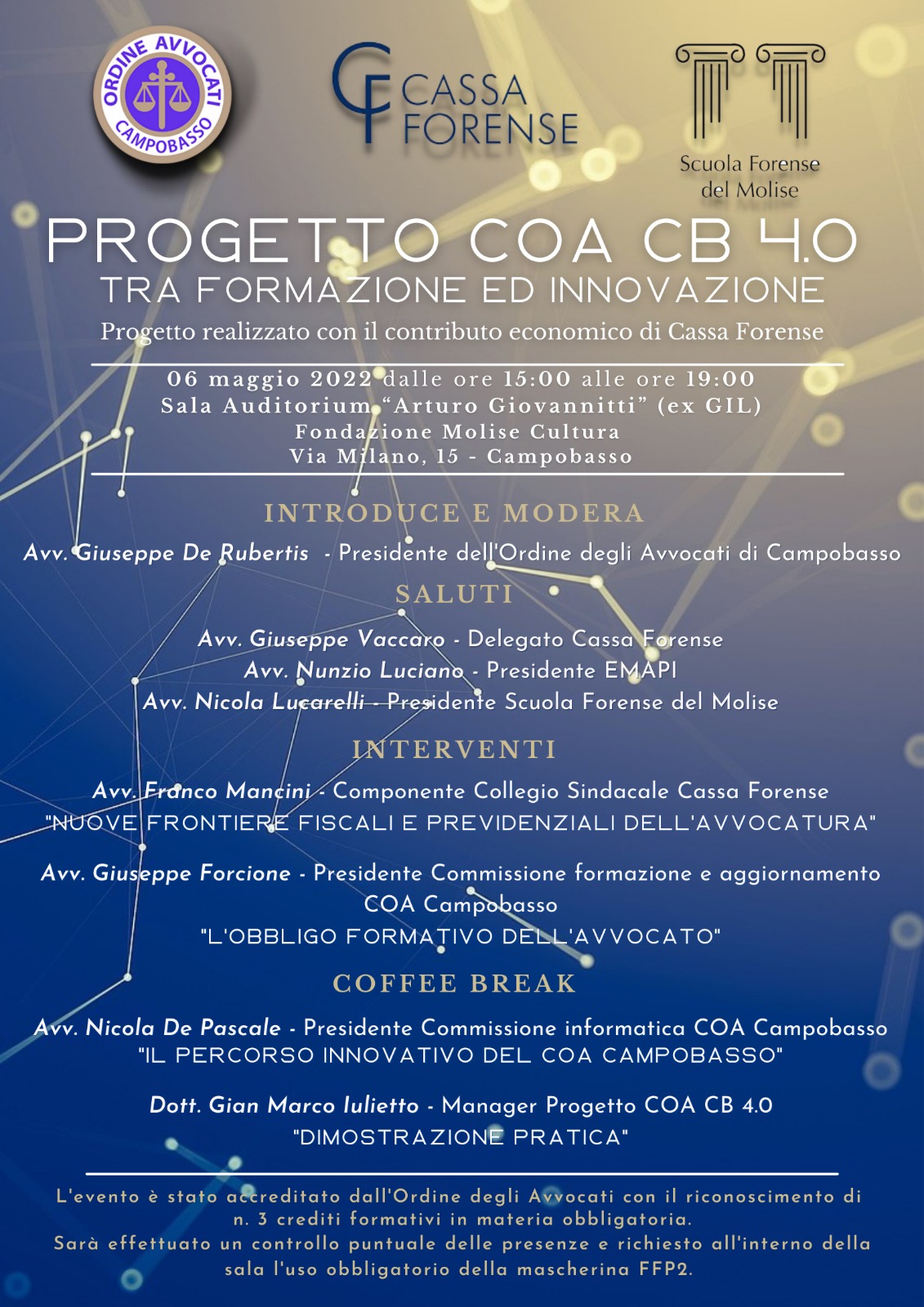 Progetto COA Cb 4.0 – Tra formazione e innovazione – 3 C.F. in materia obbligatoria
