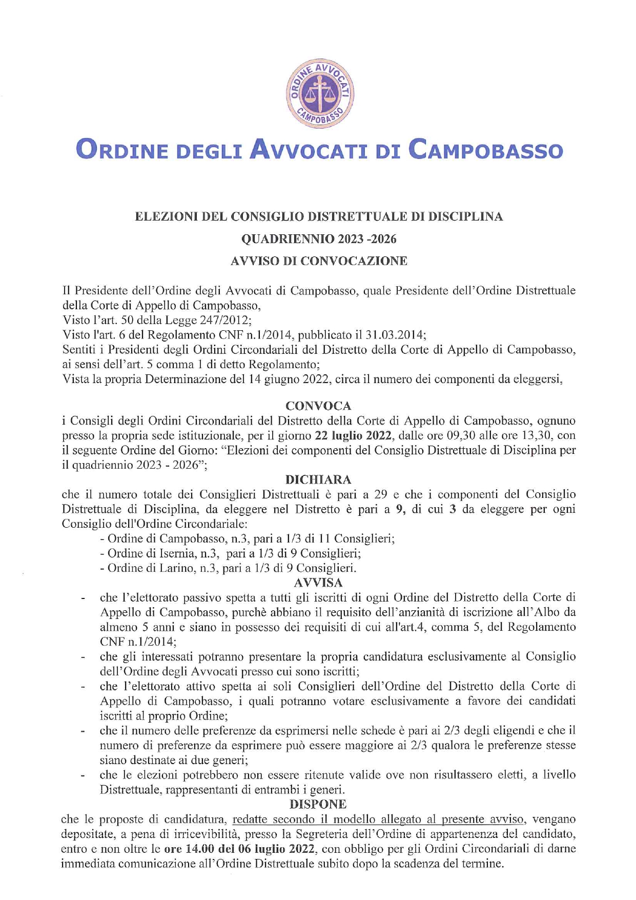 Elezioni Consiglio Distrettuale di Disciplina - Quadriennio 20232026_page-0001