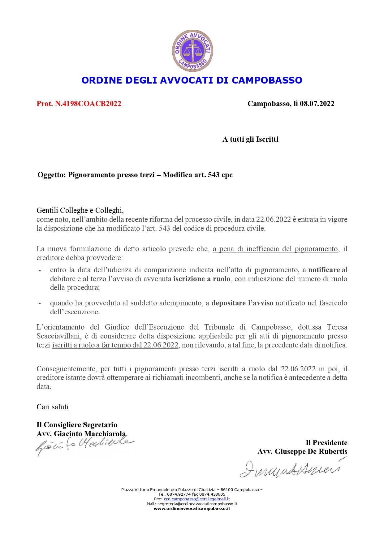 4198COACB2022-Nota agli Iscritti - Riforma Pign.