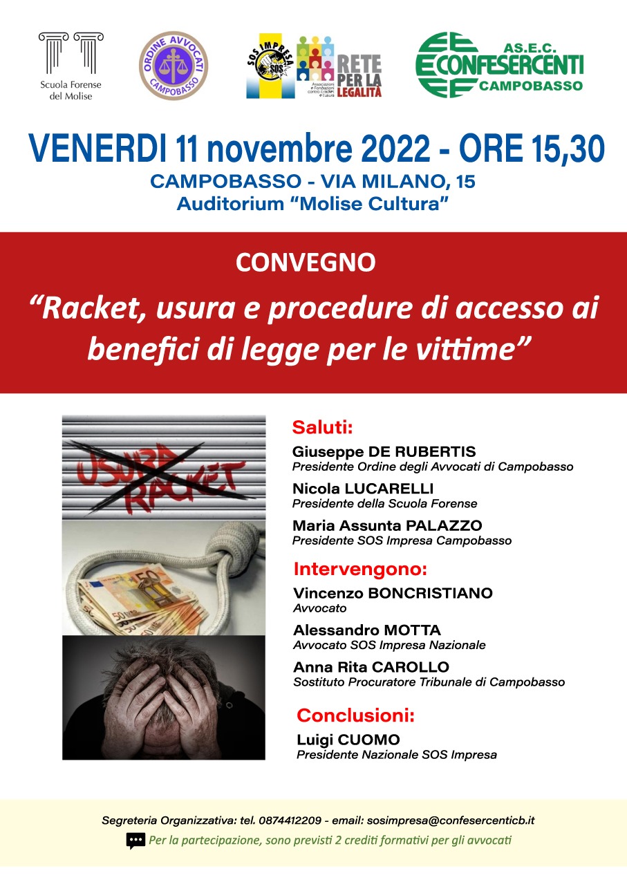 “Racket, usura e procedure di accesso ai benefici di Legge per le vittime” – 2 C.F.