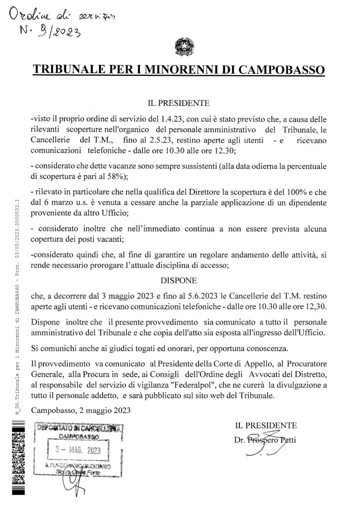 ORARIO CANCELLERIE TRIB. MINORENNI