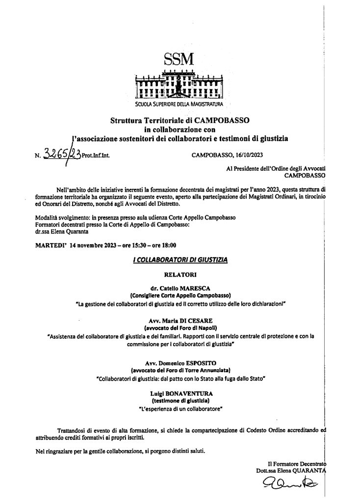 Evento SSM 14.11.2023 – I COLLABORATORI DI GIUSTIZIA – n. 2 CF