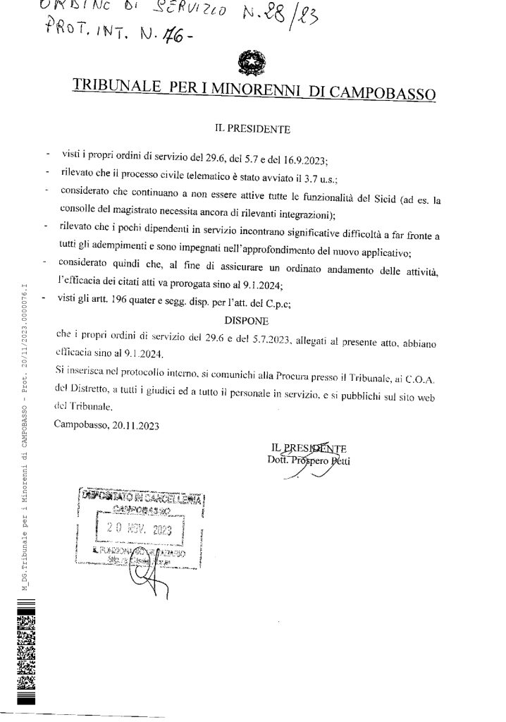 Trib. Min. Orari cancellerie al 09.01.2024